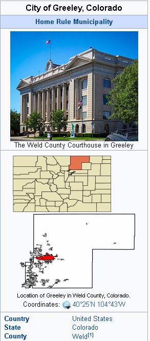 Greeley has an estimated population of 104,000 and is just a short drive away from Denver, Fort Collins, Loveland and Estes Park, the home of Rocky Mountain National Park.